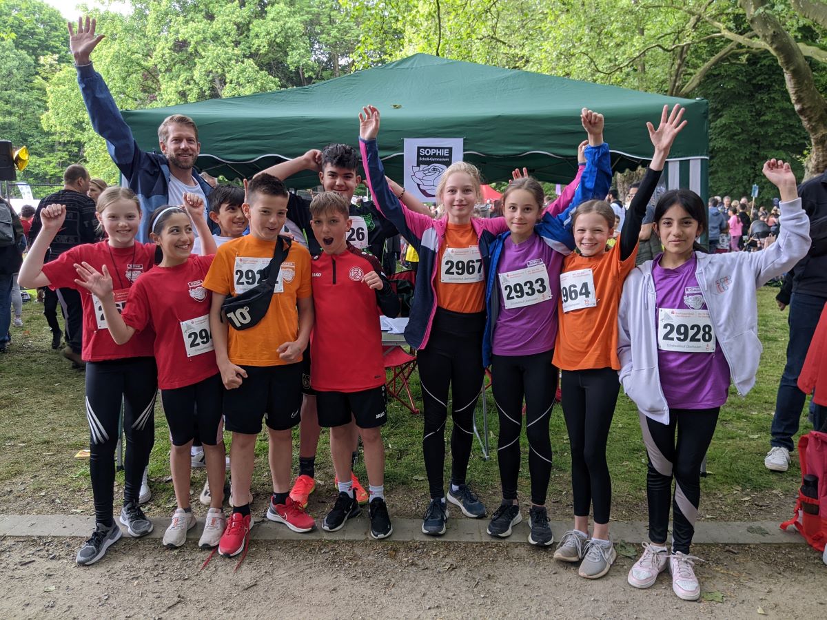 In insgesamt acht Läufen traten die Sportlerinnen und Sportler des SOPHIE an und erliefen dabei teils herausragende Ergebnisse: Bei den Mädchen Jahrgang 2012 sicherte sich Hannah Tintrop (5c) den ersten Platz, bei den Mädchen Jahrgang 2011 musste Liya Kartal (5d) nur eine Läuferin vorbeiziehen lassen, bei den Mädchen Jahrgang 2009 besetzte das SOPHIE mit Malin Schürmann (8c), Senta Theilenberg (8c) und Nele Schulte-Ortbeck (8b) sogar das komplette Treppchen und bei den Mädchen Jahrgang 2008 erlief Melinda Schlösser (9e) den dritten Platz.