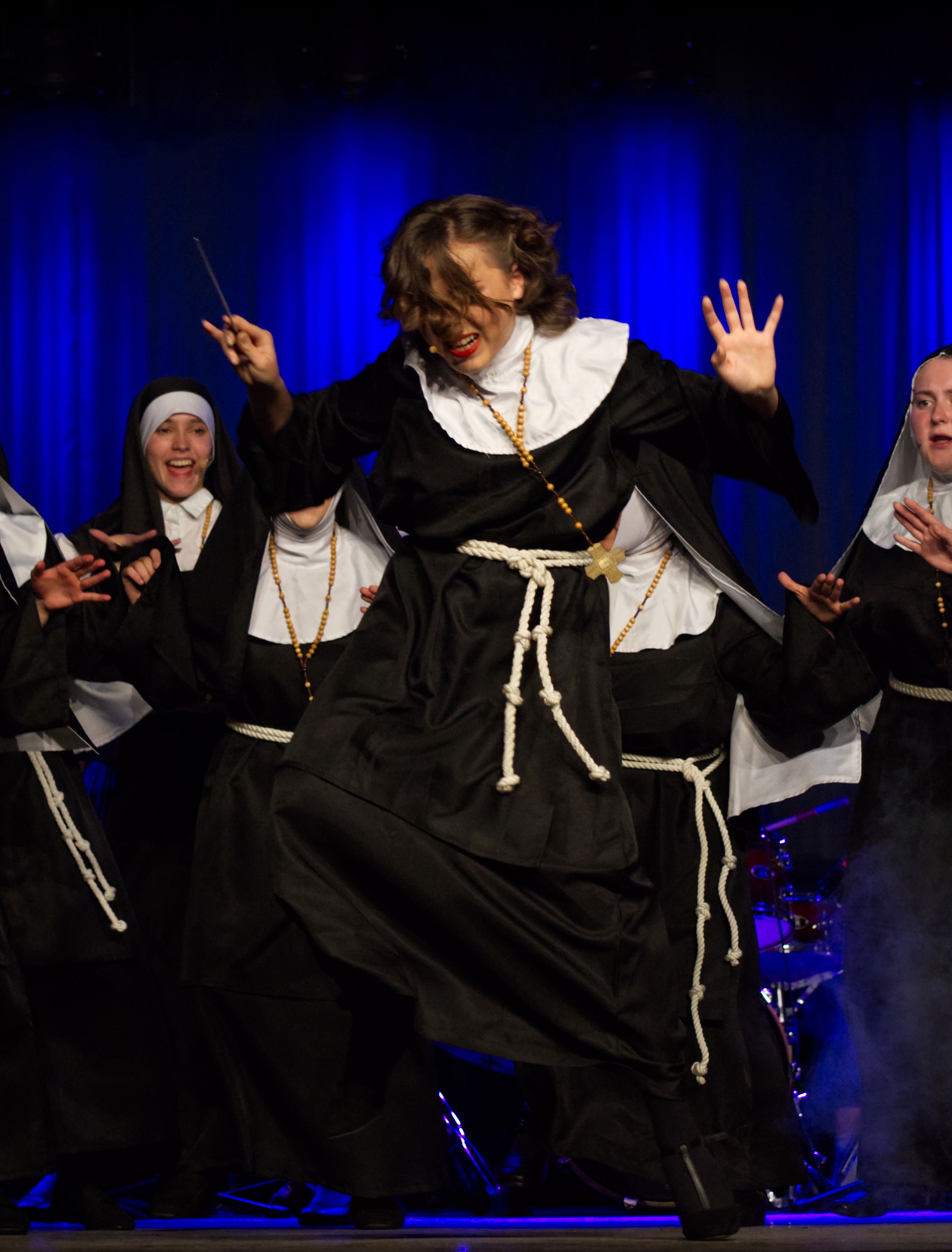 Schüler machen Musical bringt seit neun Jahren musik- und schauspielbegeisterte Schüler:innen aus ganz Oberhausen zusammen. „Alle sind zu Gast bei uns am Sophie“, freut sich Schulleiter Dr. André Remy. „Damit vernetzen wir Oberhausener Schulen und schaffen die Möglichkeit, künstlerische Talente früh und kreativ zu fördern.“ Denn die rund 80 mitwirkenden Schüler:innen und Ehemaligen im Alter von 14 bis 23 Jahren machen alles selbst. Mit starken Stimmen, bewegendem Schauspiel, professionellen Choreografien, handgefertigten Kulissen und einem Live-Orchester verwandeln sie die Aula des Sophie-Scholl-Gymnasiums in ein Kloster und inszenieren Szenen von einer klerikalen Atmosphäre eines Nonnenordens bis hin zur wilden Verfolgungsjagd. Angeleitet werden sie dabei von den Musikern Sebastian Hartung und Michel Hartwig.