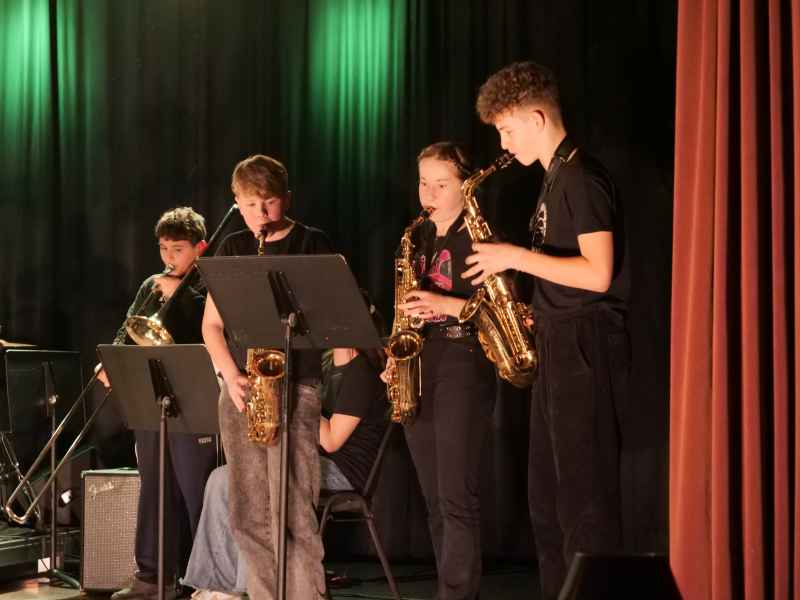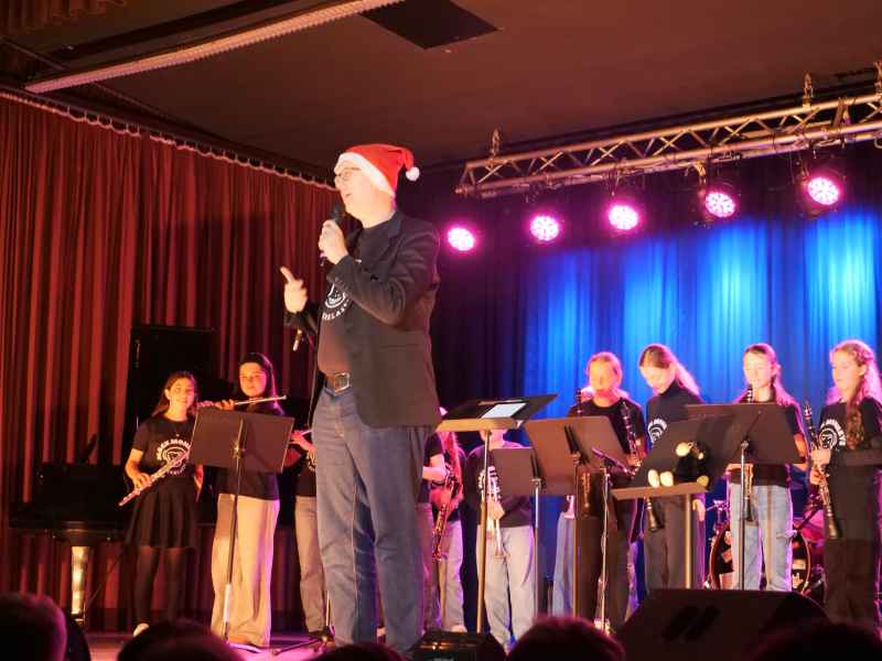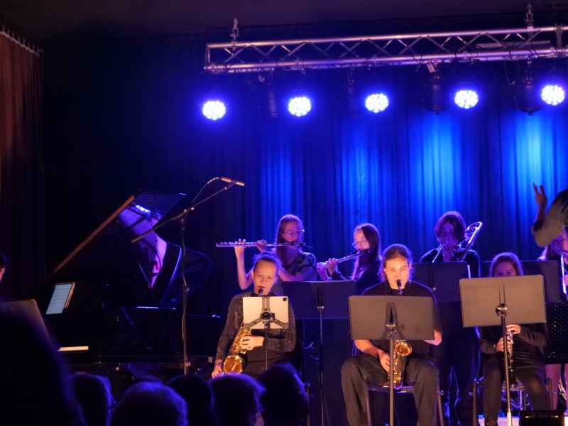 Die Big Band, geleitet von Michel Hartwig, setzte swingende Akzente. Mit Klassikern wie „Peter Gunn“ und modernen Arrangements wie „Midnight Memories“ bewiesen die Musiker einmal mehr ihre Vielseitigkeit. Besonders hervorzuheben waren die kraftvollen Gesangseinlagen von Sara Ernesti, Marie Beckmann und Milena Rohrbach, die die Stücke mit ihrer stimmlichen Strahlkraft interpretierten.