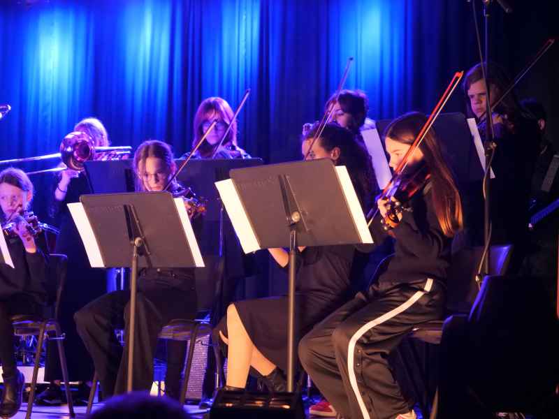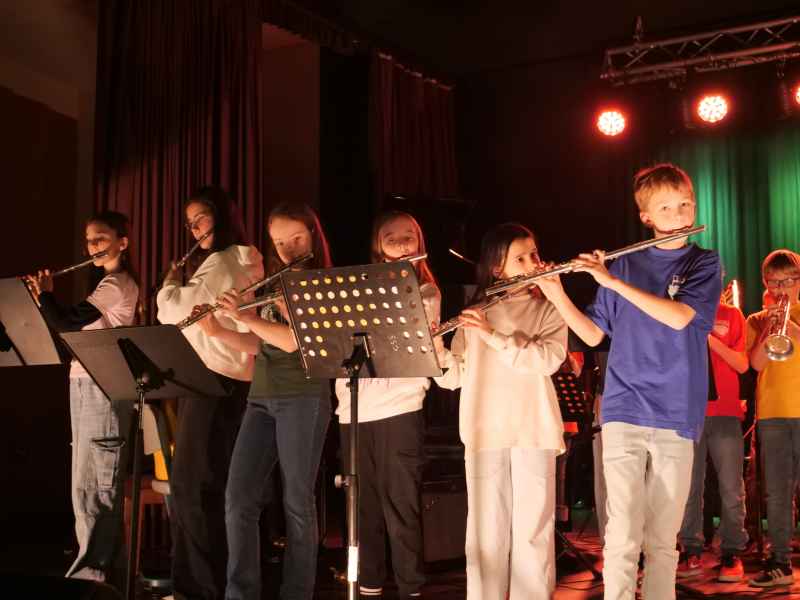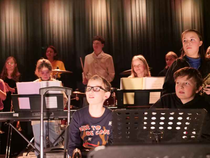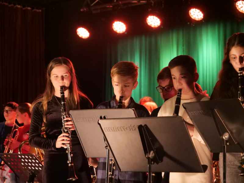 Die WindStars unter der Leitung von Vera Hoffmann und Felix Tersteegen setzten mit „Winterzeit“ und dem mitreißenden Schulklassiker „Hier am Sophie“ hausgemachte musikalischen Höhepunkte. Unter der Leitung von Holger Mau wusste die Bläser SUPERclass mit einem eindrucksvollen Medley traditioneller Weihnachtslieder und filmmusikalischen Hits, wie „Pirates of the Caribbean“ und „Star Wars“, zu begeistern. Besonders spektakulär geriet der Auftritt mit dem Titel „All Star“, bei dem die Schulband One 21 das Ensemble unterstützte und für einen spannenden Cross-Over-Moment sorgte. Ein weiteres Highlight boten die Bläser SUPERstars unter der Leitung von Vera Hoffmann: Ihr Repertoire reichte von ABBAs „Happy New Year“ über den Nirvana-Klassiker „Smells Like Teen Spirit“ bis hin zum ergreifenden „From Now On“ aus The Greatest Showman. Mit „Shape of You“ (gemeinsam mit der Bläser SUPERclass) bewiesen sie zudem, wie zeitgenössische Hits in einem instrumentalen Gewand erstrahlen können. Auch die Black Monkeys, ein weiteres Ensemble der Bläser SUPERclass unter der Leitung von Jens Langenberg, setzten Akzente. Mit den Titeln „Dorfkinder“, Adeles „Skyfall“ und einer andächtigen Version von „Carol of the Bells“ bewiesen sie dem Publikum ihren enormen instrumentalen Lernfortschritt.