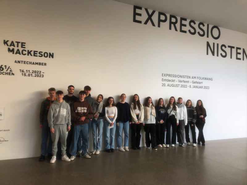 Der Kunstgrundkurs 4 der Jahrgangsstufe Q1 hat am Freitag, den 16. Dezember 2022 die temporäre Ausstellung „Expressionisten am Folkwang“ des Museums Folkwang in Essen besucht. Im Kunstunterricht haben die Schülerinnen und Schüler bereits Kunstwerke der Expressionisten besprochen und eigene expressionistische Landschaften mit Acrylfarben auf Karton gemalt. Hierbei haben sie mit Hilfe der Ausdrucksfarben eine besondere Stimmung in Bild erzeugt.