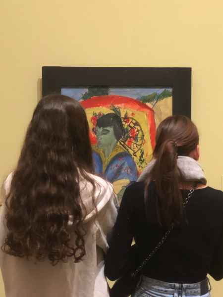 In der Ausstellung konnten die Schüler und Schülerinnen endlich Originale in ihrer ganzen Farbpracht wahrnehmen und das Museum als außerschulischen Lernort erfahren. Neben den deutschen Expressionisten Heckel, Kirchner, Karlschmidt-Rottluff waren u. a. auch Arbeiten der Künstler Munch, Schiele und Kokoschka zu sehen. Das Museum zeigt in diesem Zusammenhang auf zwei Tafeln den dokumentierten Kunstraub durch die Nationalsozialisten. Sechzehntausend Kunstwerke des Museums wurden geraubt, verkauft oder vernichtet, nachdem sie zuvor als „entartet“ bezeichnet wurden.