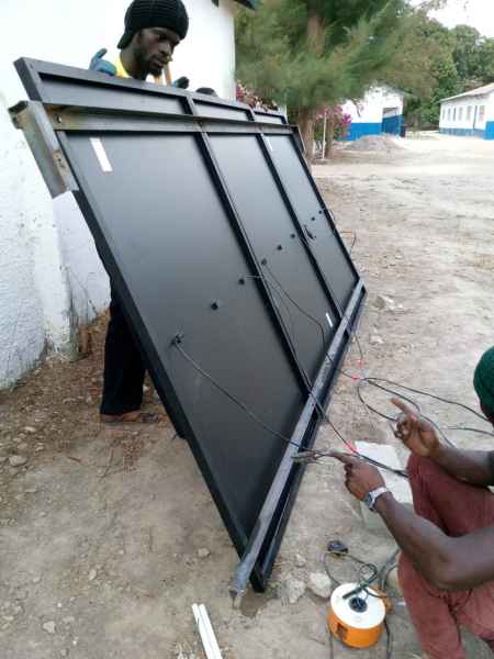 - Installation der Förderpumpe, welche durch Solarpanele und Batterien mit Strom versorgt wird.